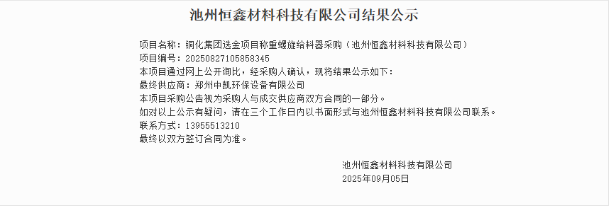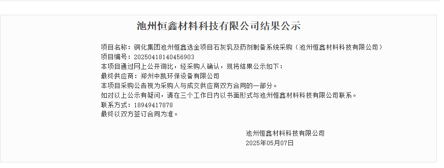 喜報 + 1!感謝 [池州恒鑫] 的再次選擇,我司成功中標(biāo) 池州恒鑫材料科技有限公司[石灰乳及藥劑制備系統(tǒng)采購項目]和[稱重螺旋給料器采購項目]!基于過往的成功合作,這次我們更懂需求、更有底氣,定不負期待!
